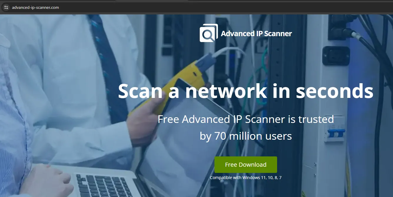 - The URL they clicked redirects to the REAL Advance IP Scanner website