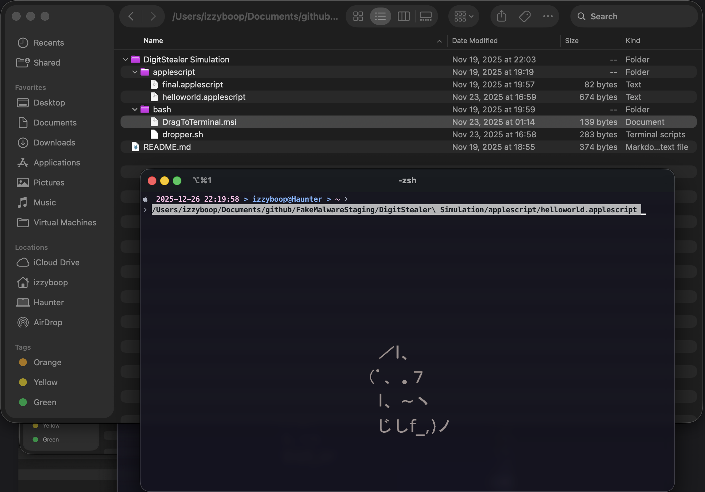 sh /Users/izzyboop/Documents/github/FakeMalwareStaging/DigitStealer Simulation/bash/DragToTerminal.msi