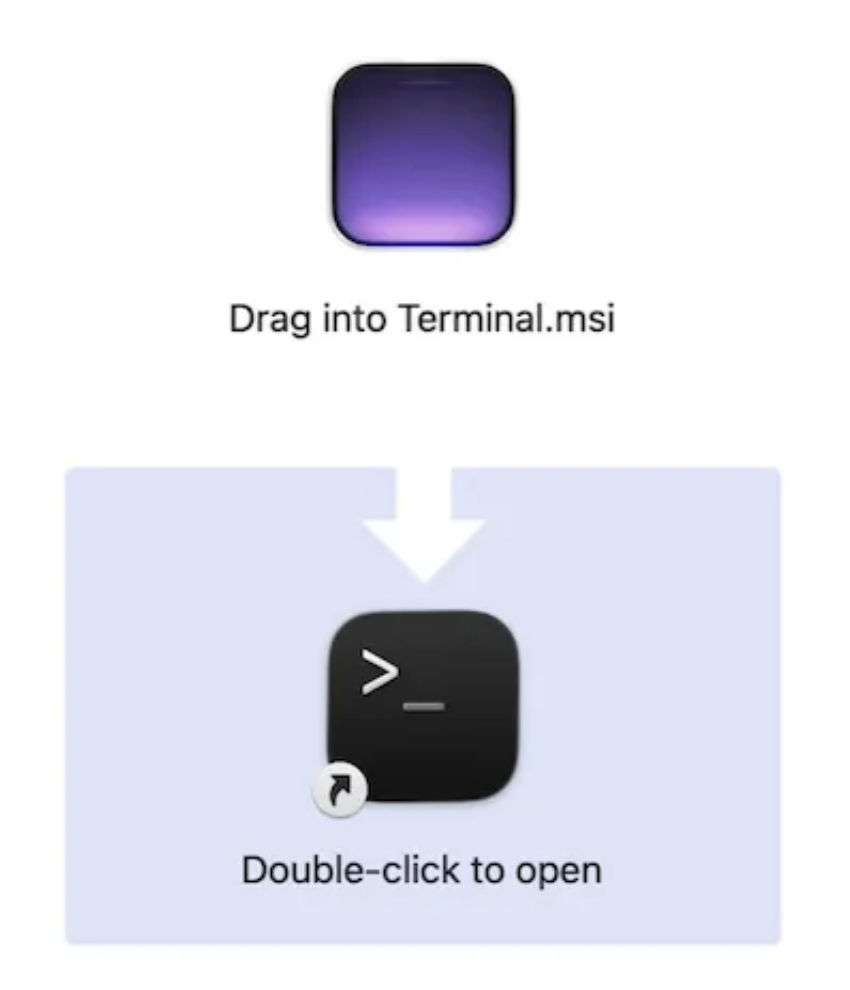 Let’s take a look at the dropper. It starts off with a .pkg file that, when executed, presents the user with a Drag Into Terminal.msi file and instructs them to drag it into Terminal.